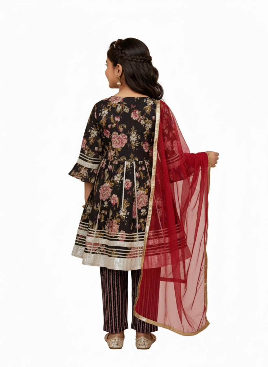 ● Kurti : Embellished Kalijar designer kurti featuring gotta lace detailing ,tie-ups and back button opening .