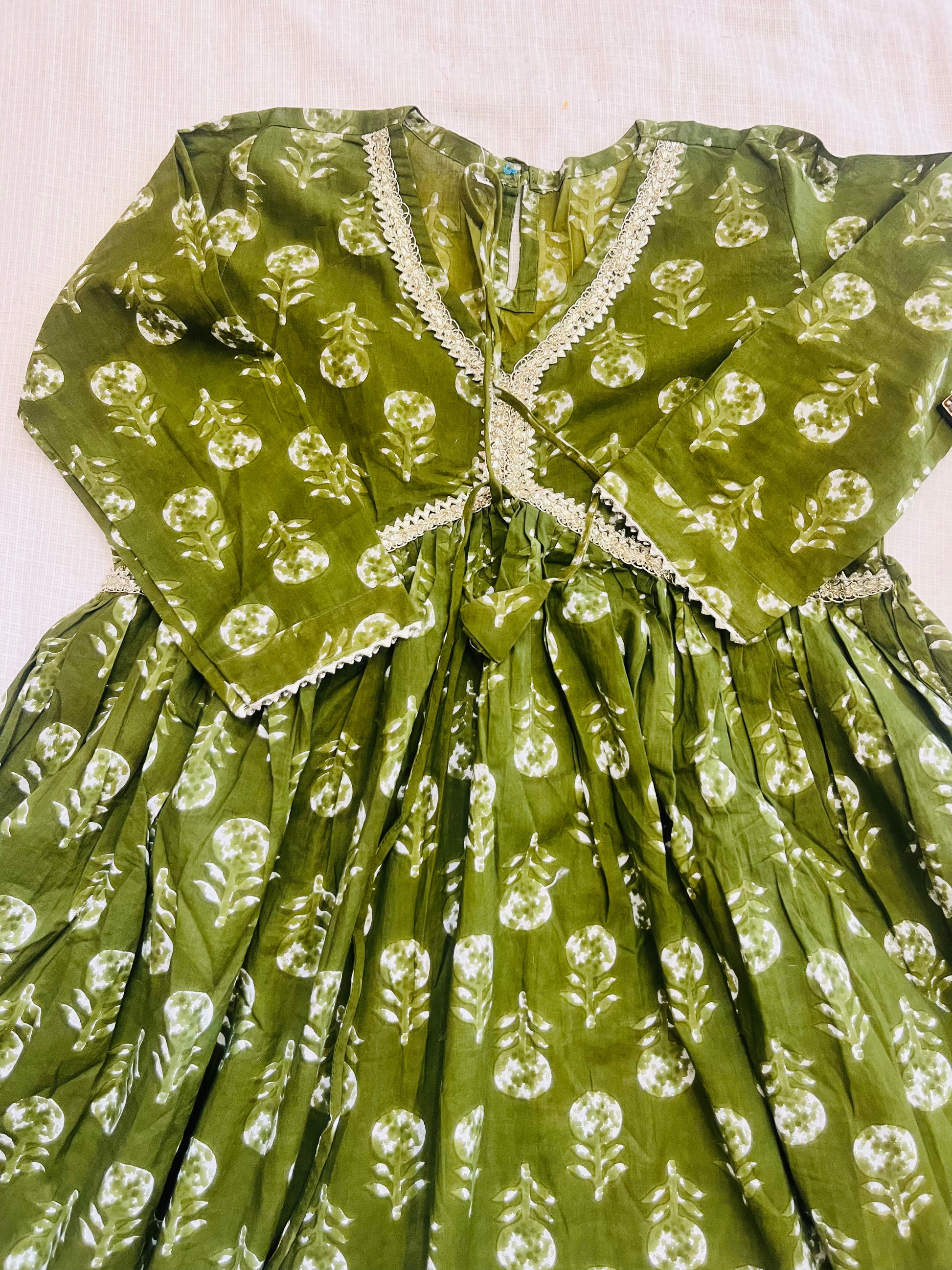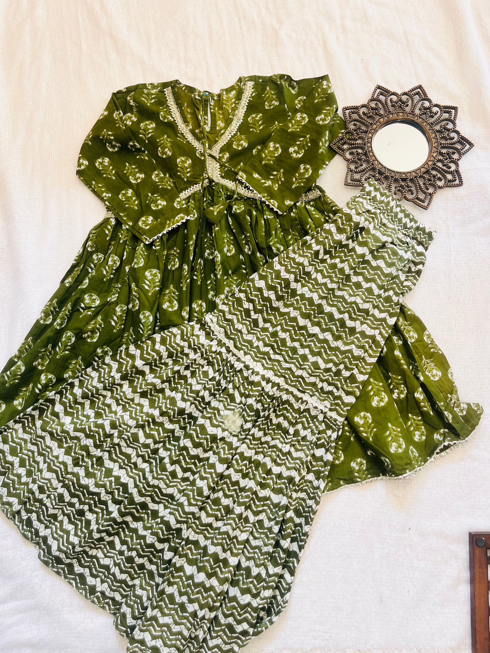 Block Printed Heena Green Coloured Anakari Suit with Sharara