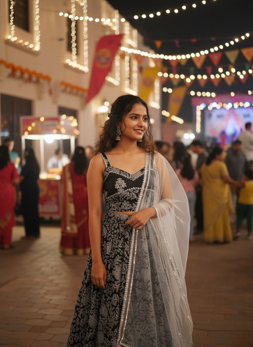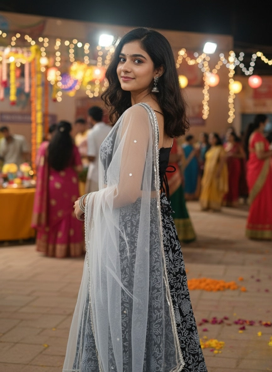 ● Dupatta : contrasting net fabric embellished with gotta lace