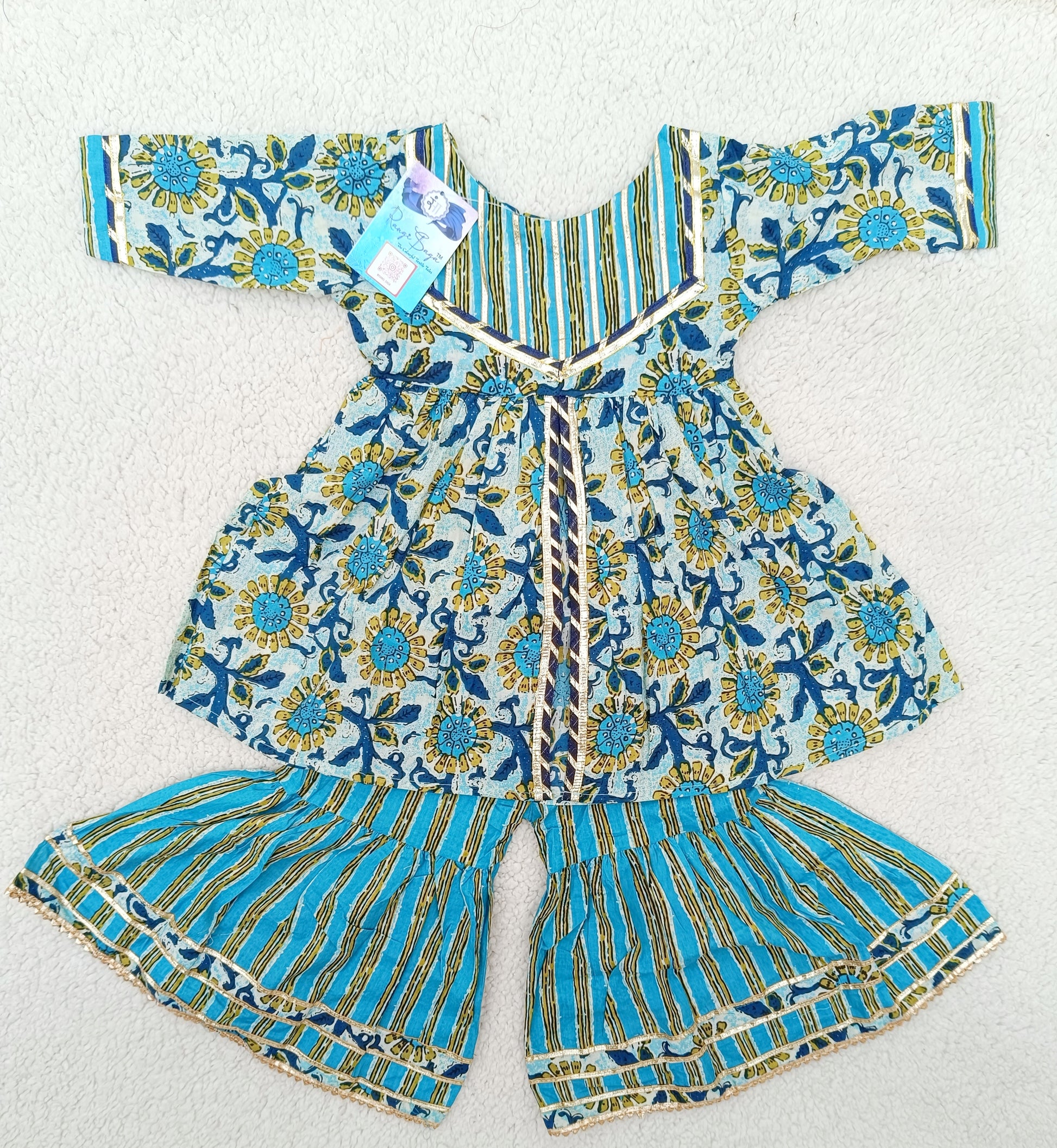 ● Sharara /Bottom : Elegant floor-length sharara featuring a comfortable elasticated waistband for a perfect fit.