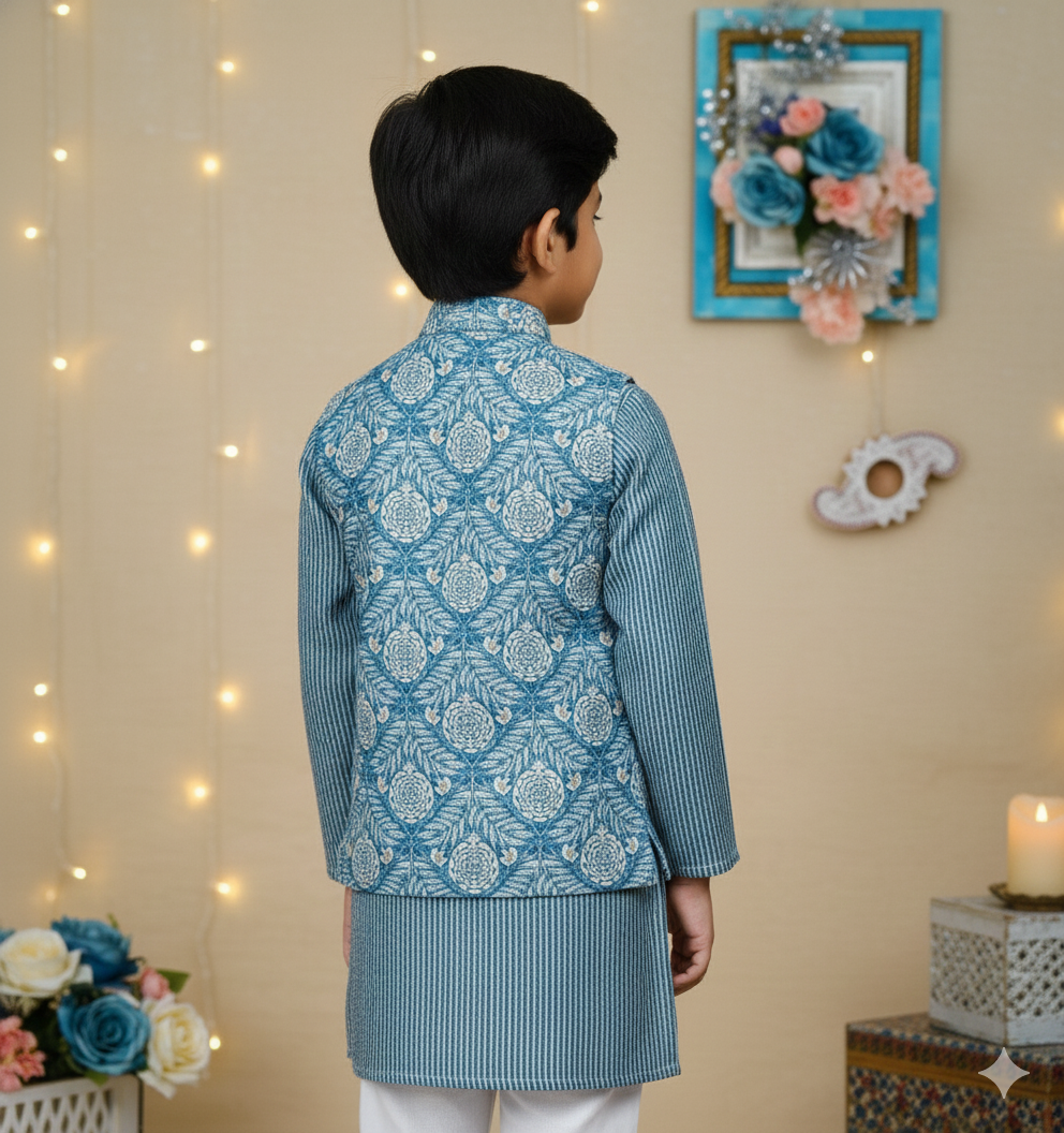 ● Kurta : Printed Stripes , Mandarin collar with front buttons opening