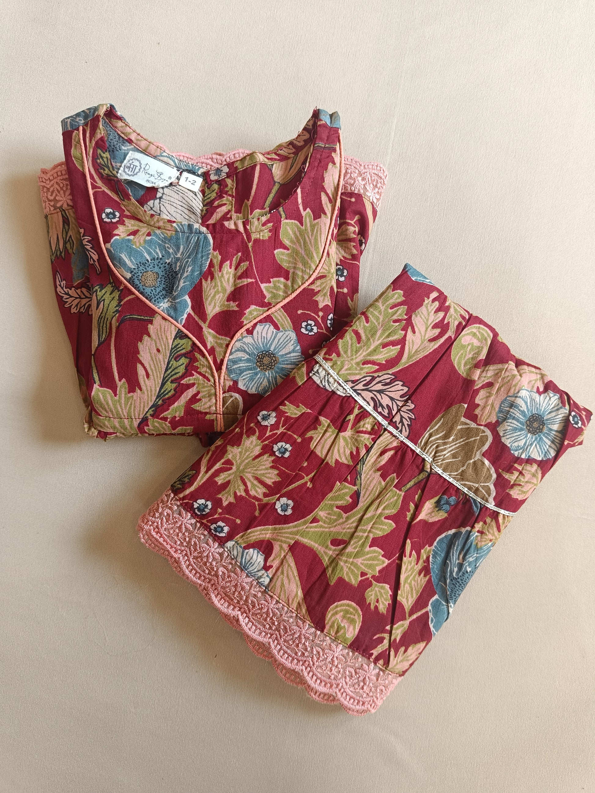 ● Kurta : Stylish gathered kurta made from soft, comfortable cotton with front adjustable strings and embellished net lace.