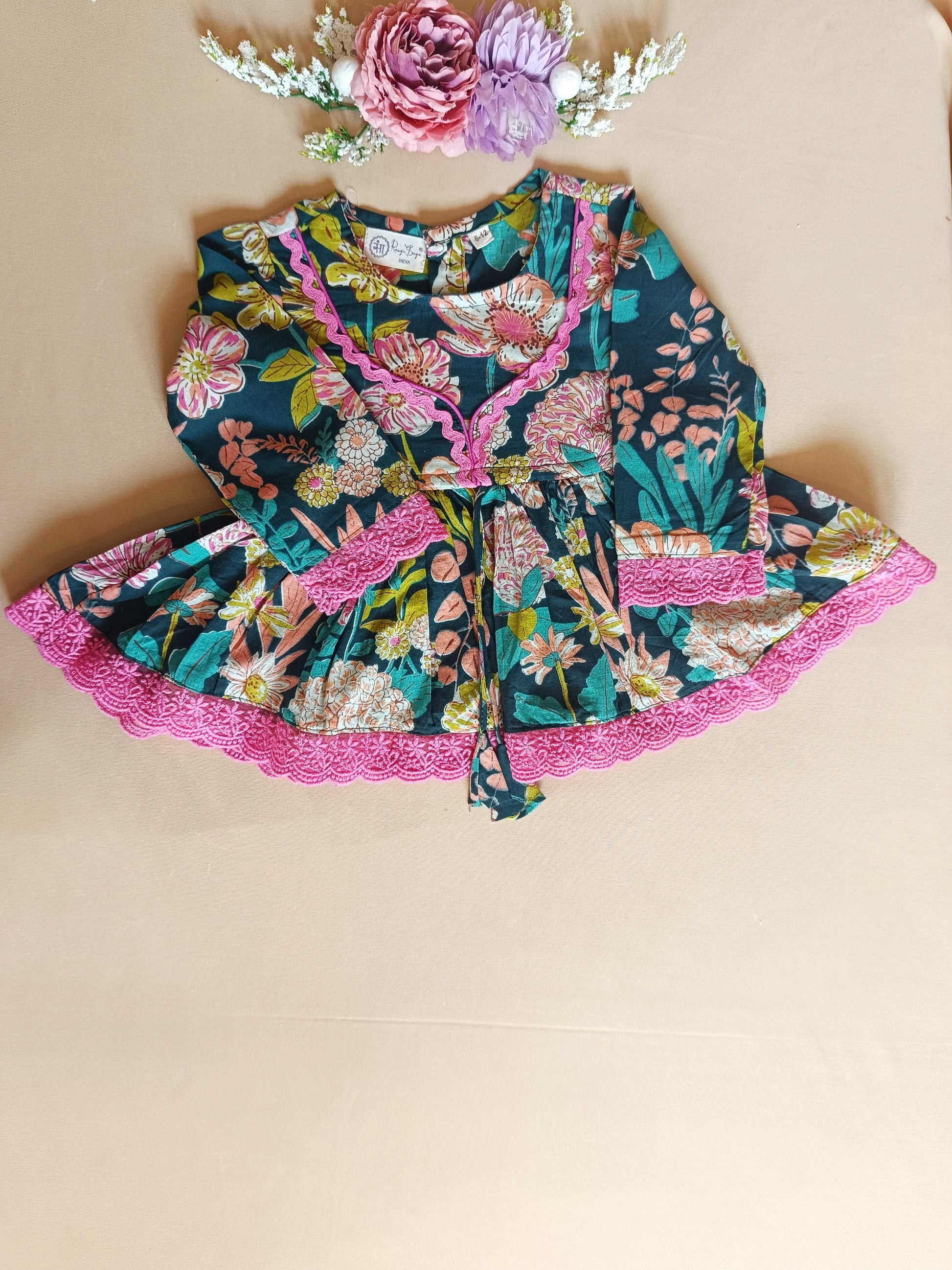 ● Kurta : Stylish gathered kurta made from soft, comfortable cotton with front adjustable strings and embellished net lace.