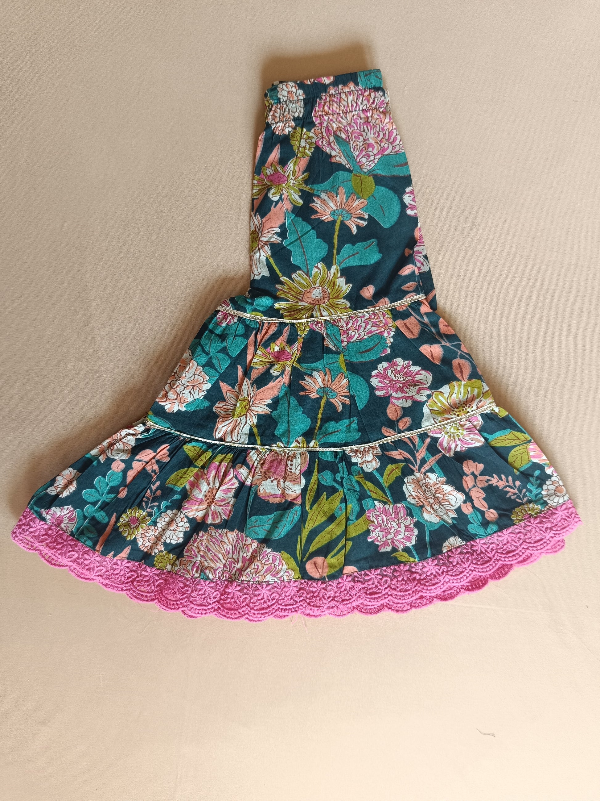 ● Sharara /Bottom : Elegant floor-length sharara featuring a comfortable elasticated waistband for a perfect fit.