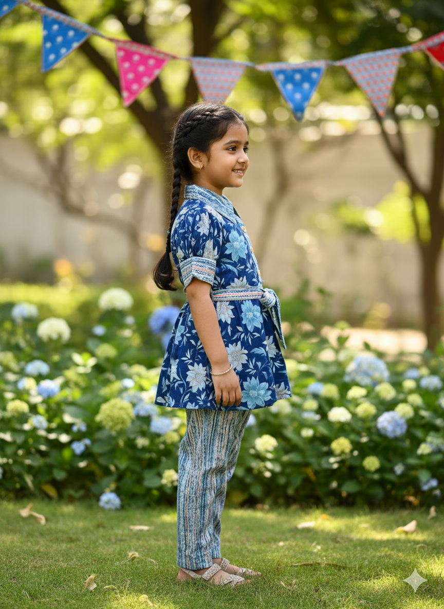 ● Top : Flower print puff-sleeve top featuring a front button opening