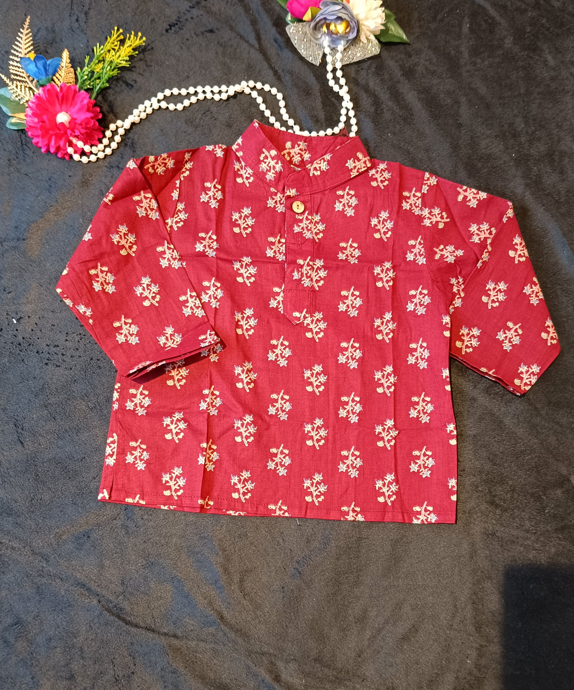 ● Kurta : Block printed fabric with Mandarin collar and front buttons opening