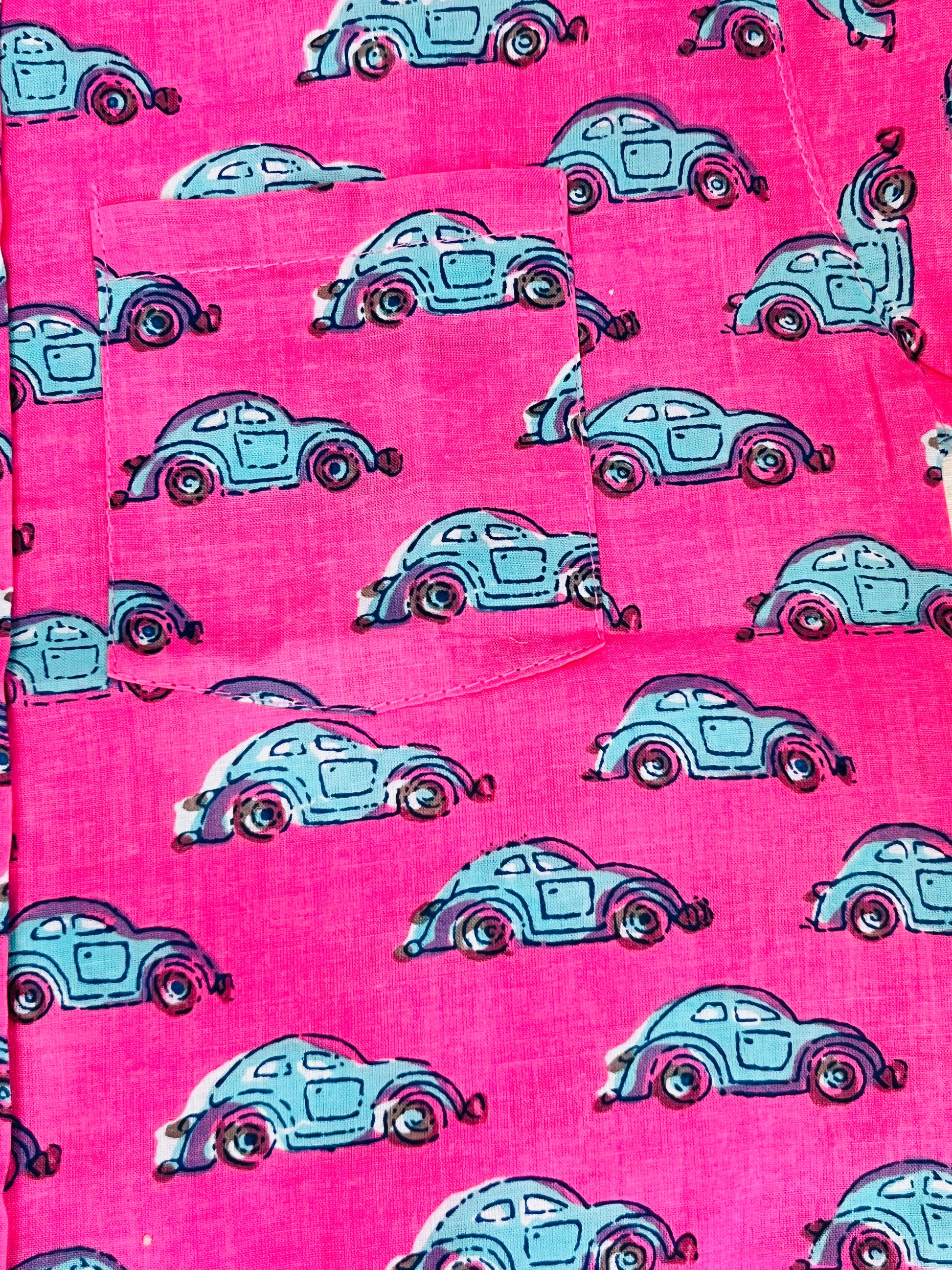 ● Shirt: Car printed shirt with front button opening.