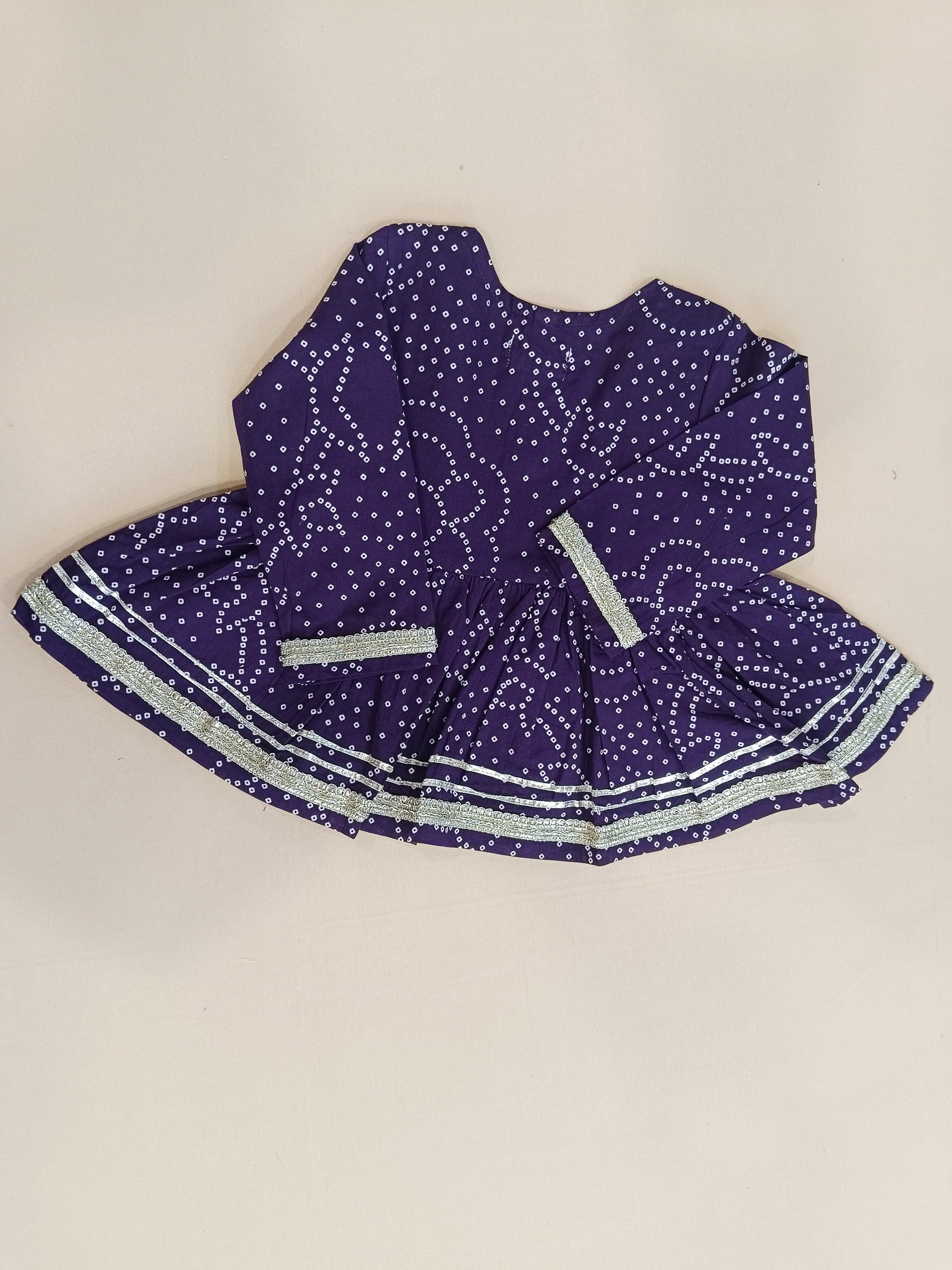 Purple Bandhej Anarkali Kurta with Afghani Salwar