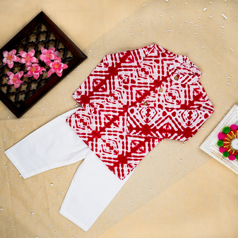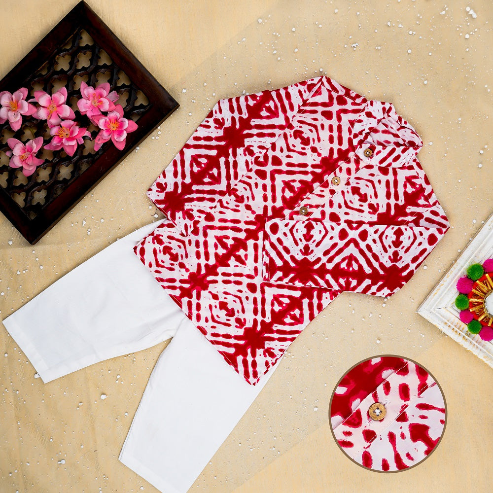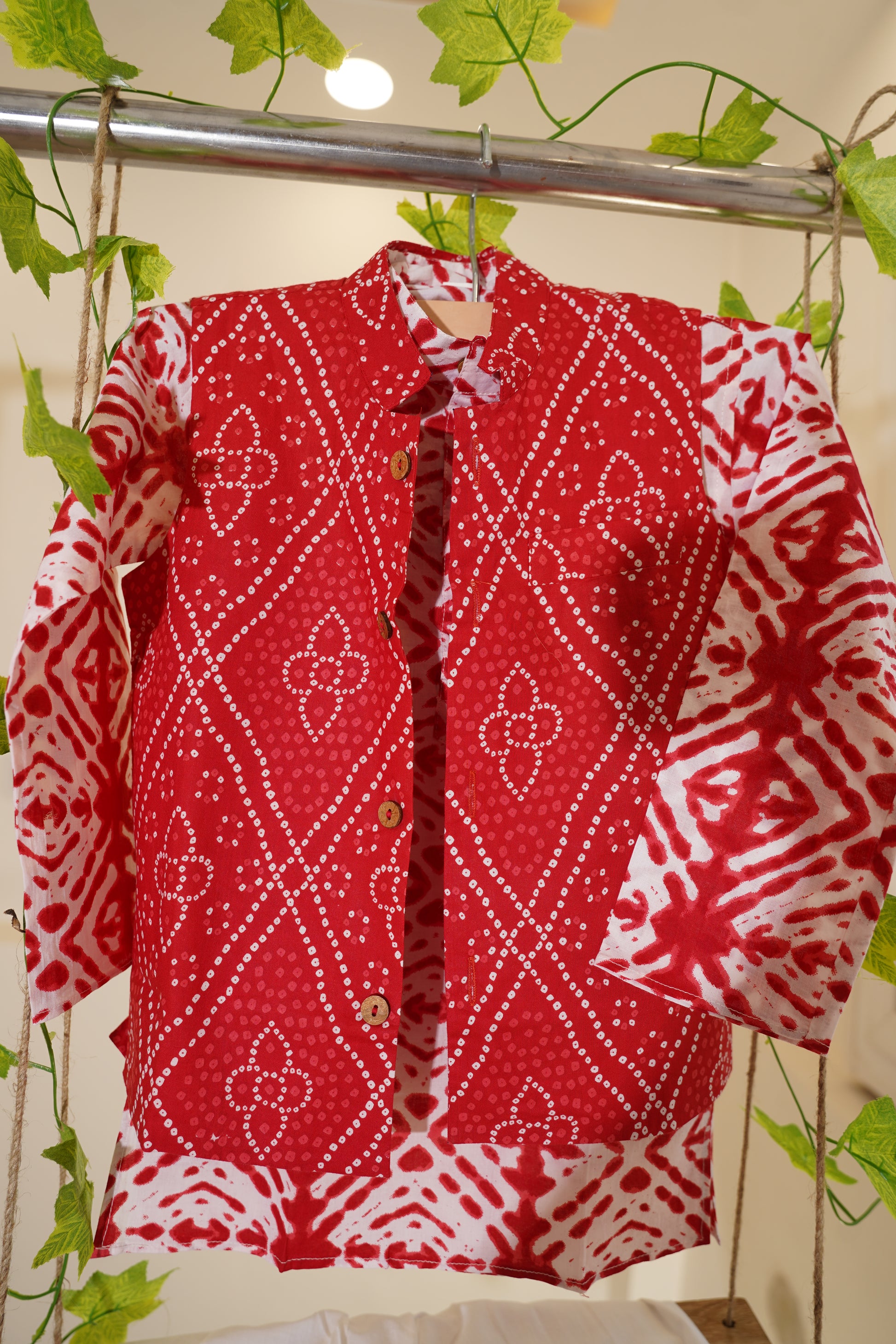 Red Bandhej Kurta And Jacket With Pyjama ( Tie and Dye)