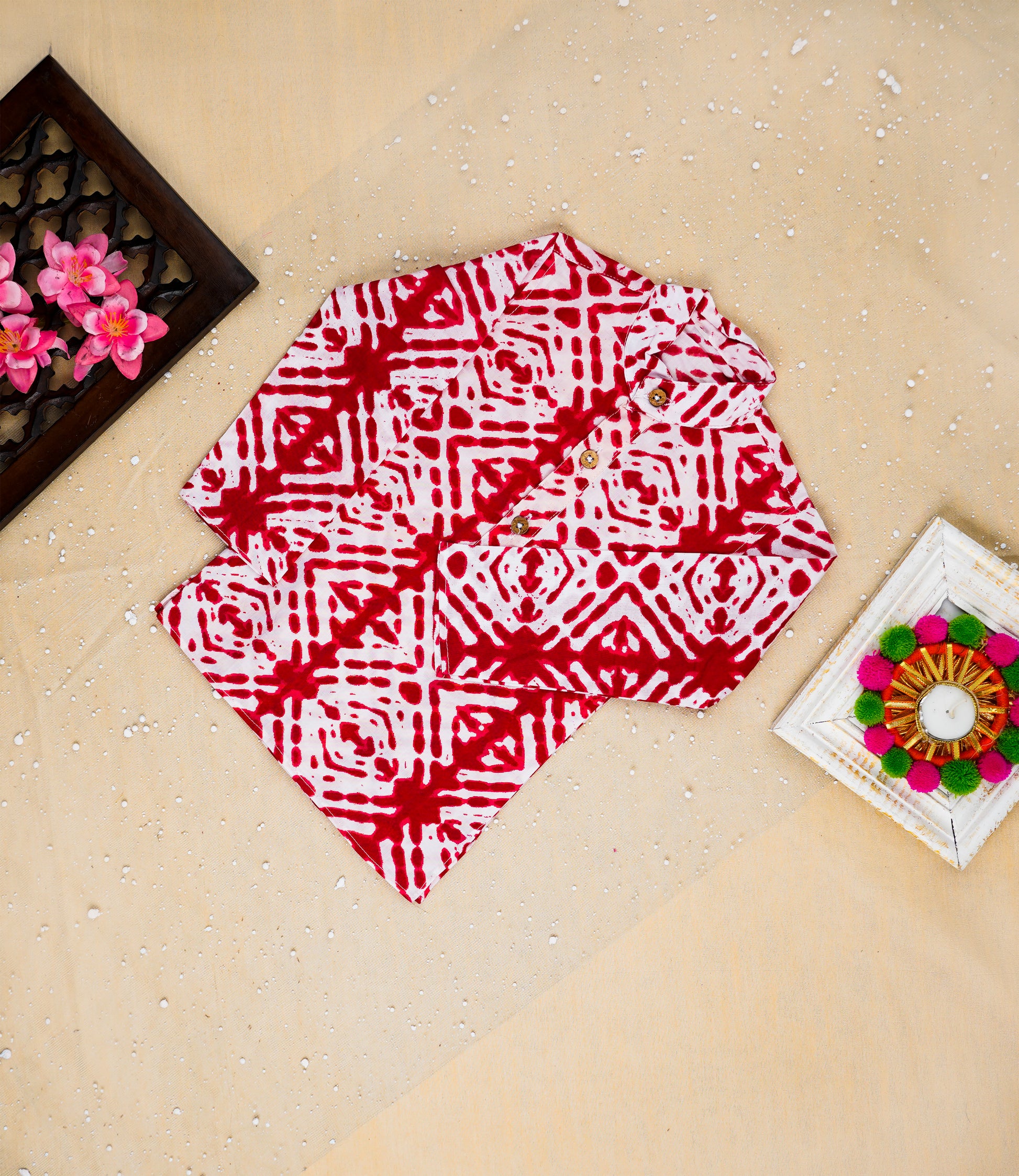 ● Kurta : Shibori print Kurta with Mandarin collar and front buttons opening