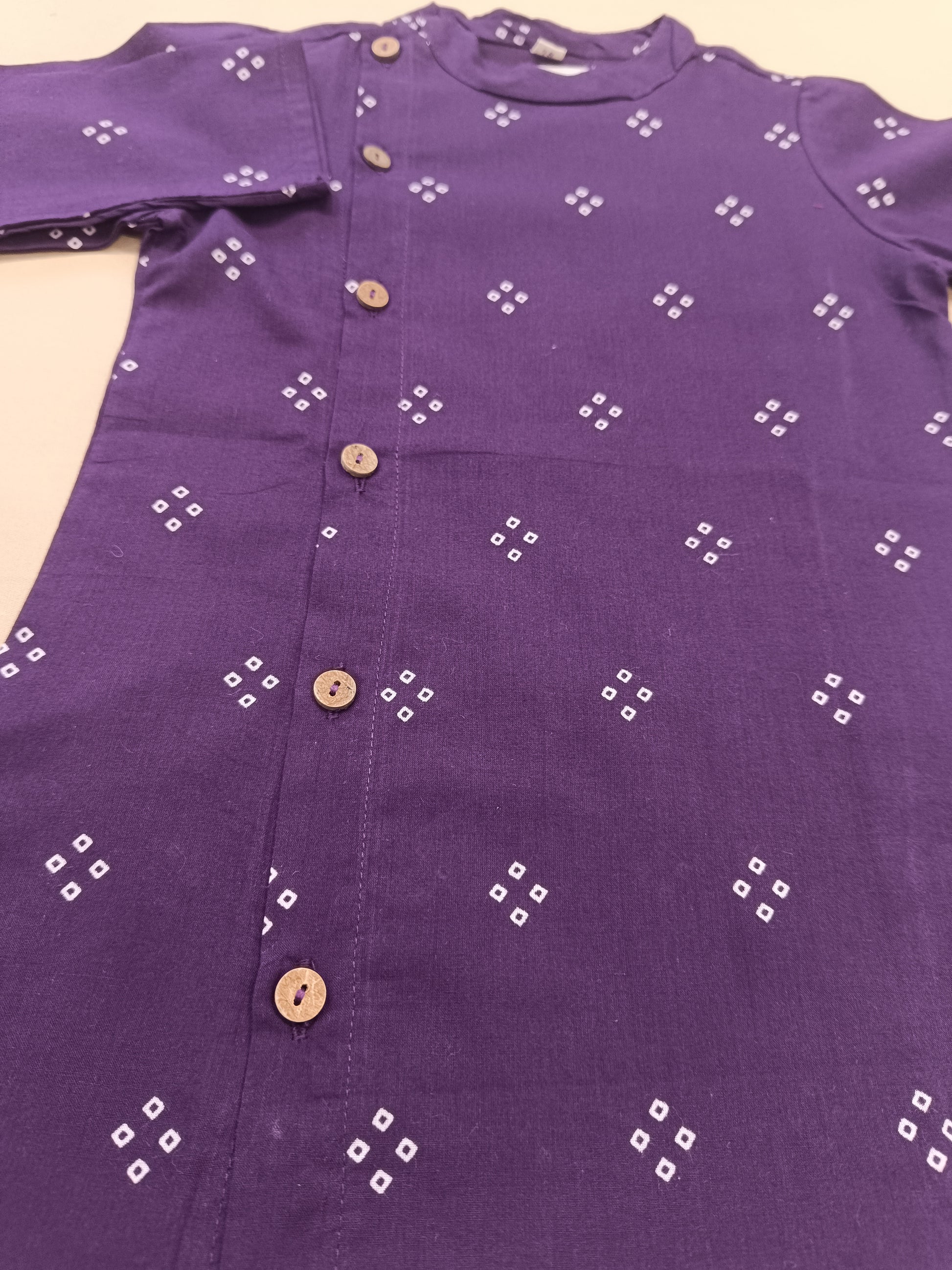 ● Kurta : Bandhej printed fabric with Mandarin collar and Side buttons opening