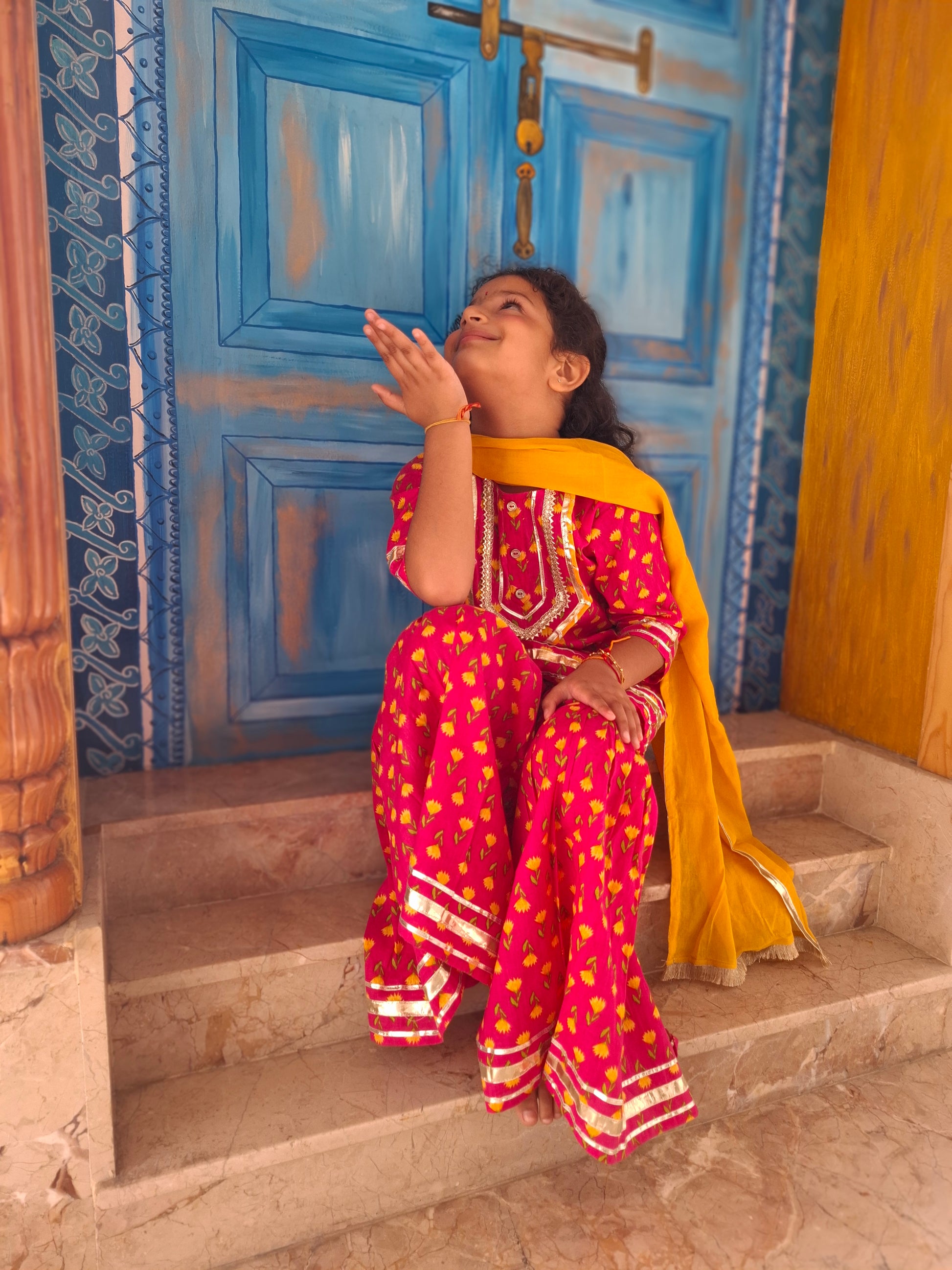 ● Sharara /Bottom : Elegant floor-length sharara featuring a comfortable elasticated waistband for a perfect fit.
