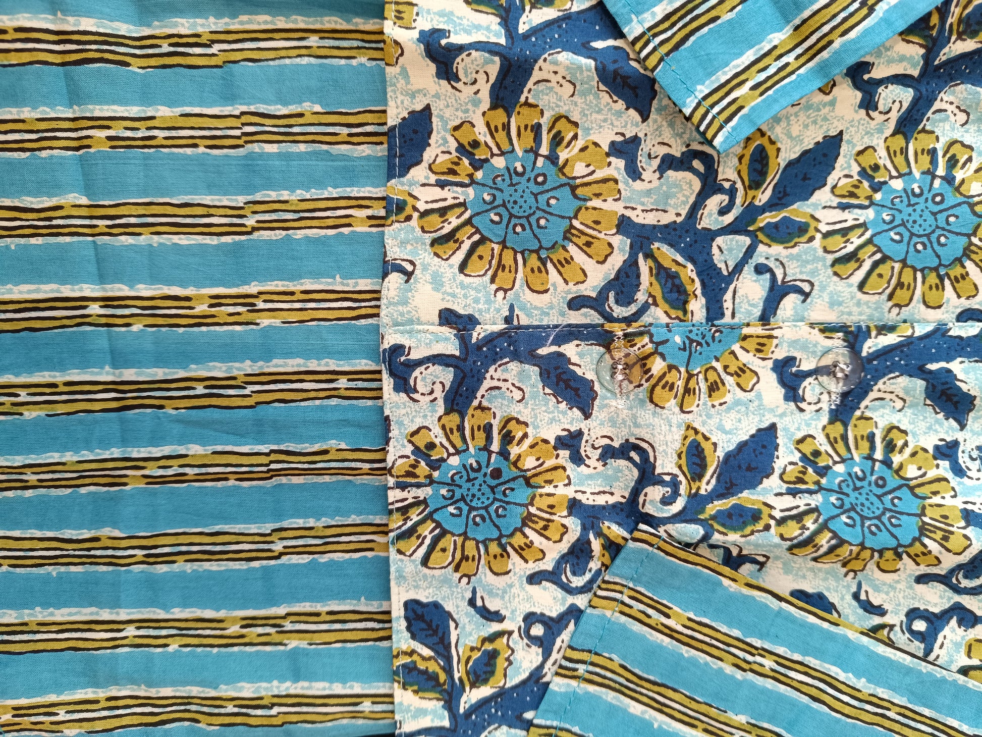 ● Kurta : Matching striped printed fabric with Mandarin collar and front buttons opening