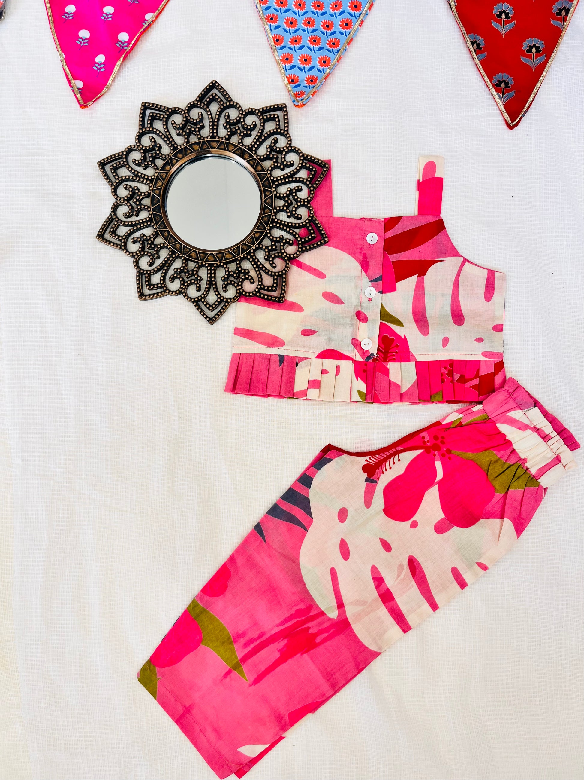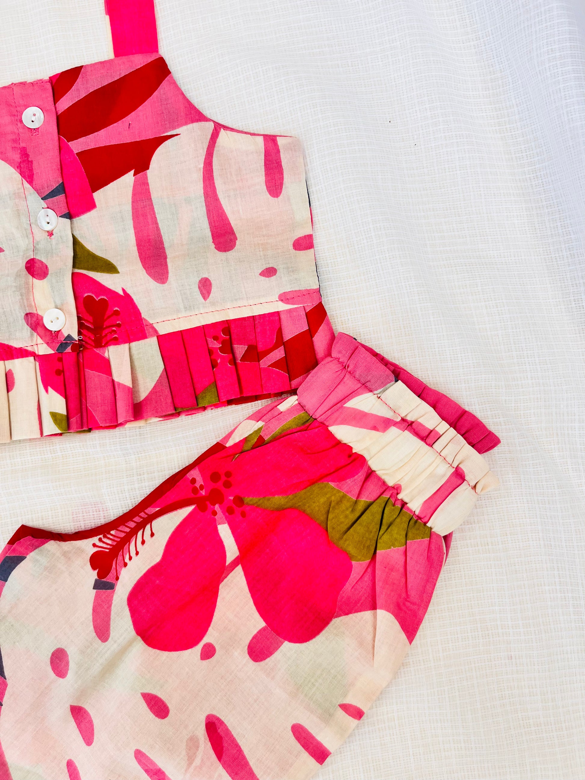 Tropical Flower Print Pink Colour Girls Co-Ord Set